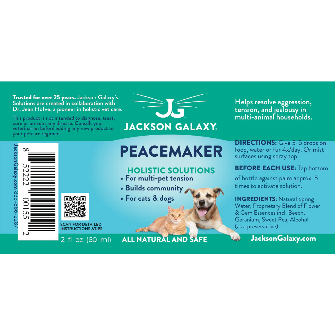 In many multi-animal households, competition for territory and the resources within that territory can lead to friction, and the deepening of divides that beforehand was minor and manageable. Peacemaker addresses this group energetic dynamic, and by doing so, helps to reduce or even eliminate aggression, tension, jealousy and “over-owning” in the household.