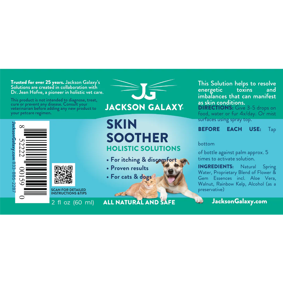 Special Note: Jackson Galaxy Solutions work best when part of a more holistic program, that may include proper veterinary care, diet, behavior modification, and other holistic modalities. Consult your veterinarian before adding any new product to your pet's care regimen. These statements have not been evaluated by the Food and Drug Administration. This product is not intended to diagnose, treat, cure or prevent any disease. Store in a cool, dark place and keep out of reach of animals.